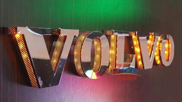 (2)字殼開啟的;字麵和字邊是一體的它的地板通常就是10mm厚的PVC板也叫PVC發泡板,圖片上的字是不鏽鋼的,不鏽鋼的發光字通常不做成麵開啟,因為那樣不利於整體美觀對不鏽鋼材質的整體美觀會打折扣。