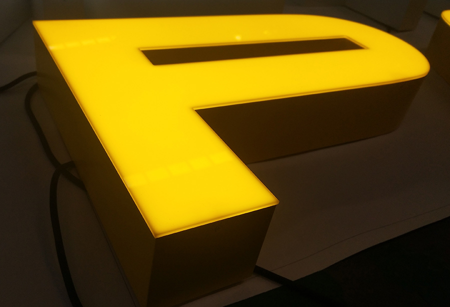 鋁邊亞克力發光字(鋁邊字):字符邊用鋁材料,亞克力麵板透明,側麵不是發光